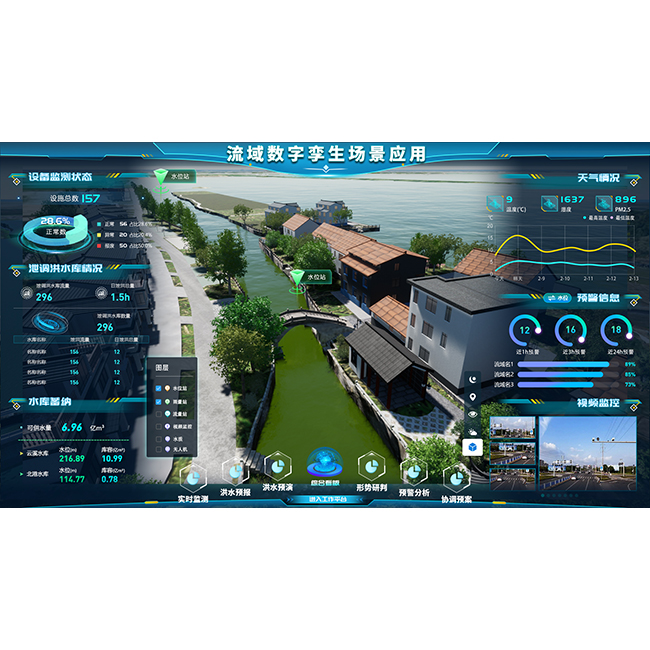 水利數字孿生場景應用依托感知集成實時狀態、數據治理、GIS及BIM圖形引擎、水利專業及智能識別模型等建立強大的數字孿生底板,對物理水利工程全要素以及管理過程進行數字化映射,實現可視化場景呈現,賦能水庫、水閘、泵站、灌區、海塘、流域等水利場景管理,構建具有預報、預警、預演、預案功能的智慧水利體系。